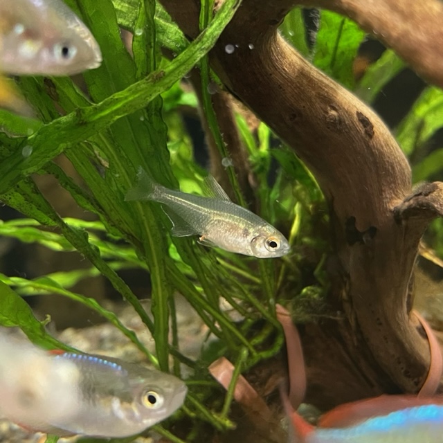 ・ダイヤモンドテトラ → まだまだ小さく地味ですが、この後大変美しく成長します。変貌ぶりをお楽しみください。