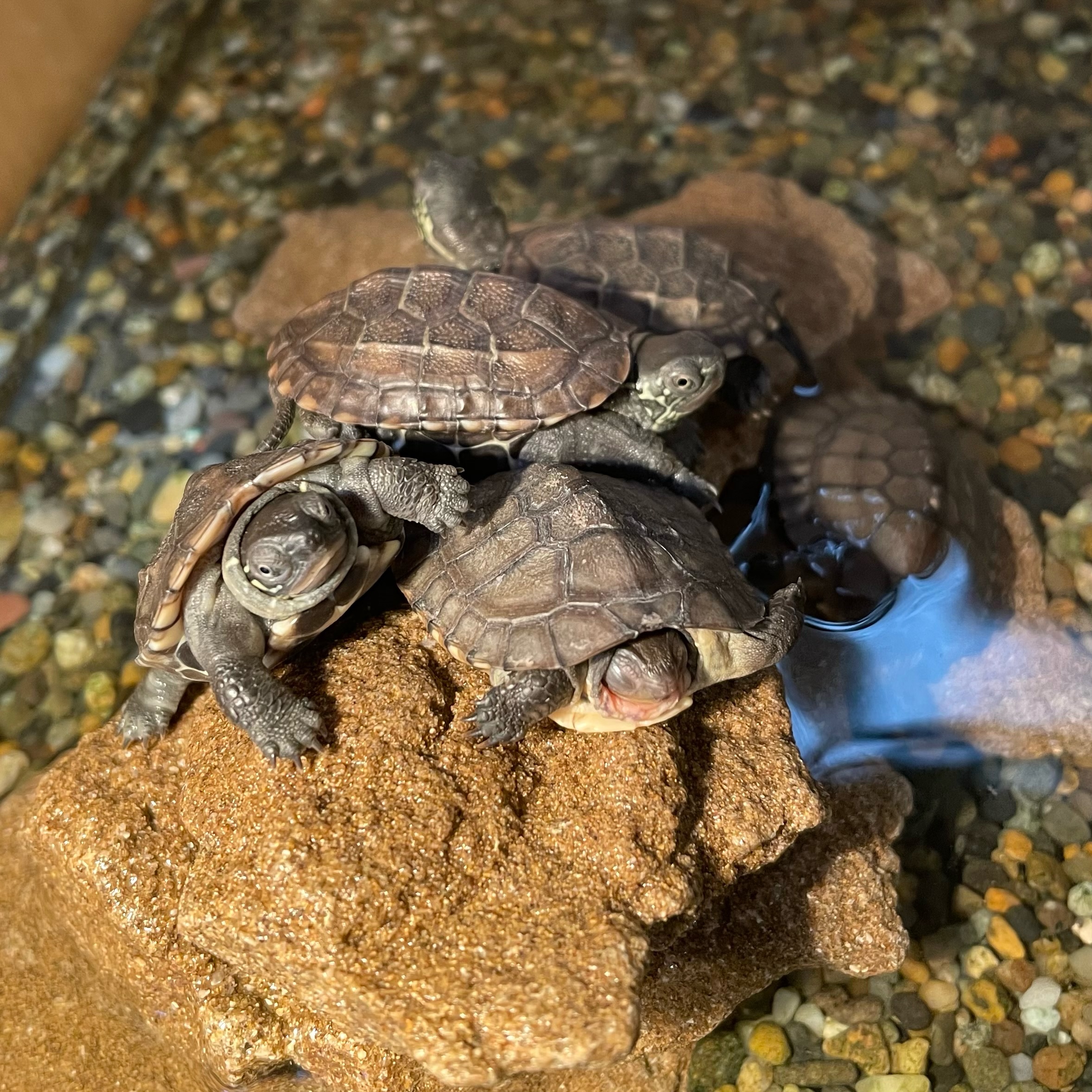 先週入荷したカメちゃんたち、とっても元気です。今日もみんなでライトに当たりぽかぽかです。.jpeg)